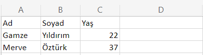Öncelikle Excel’deki verilerimize göz atalım.
